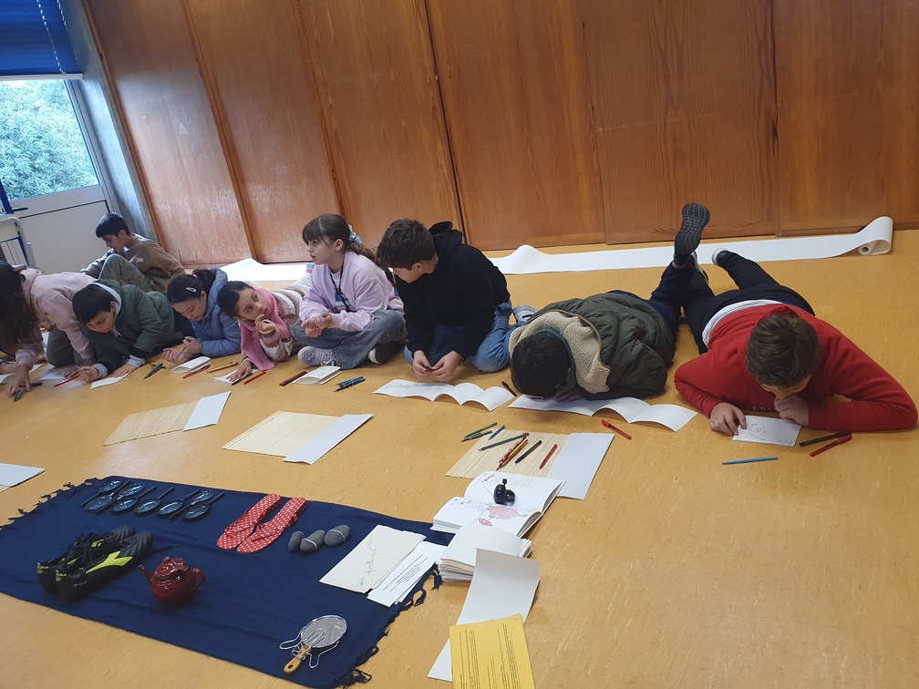 Através de provocações criativas, os alunos sentiram, interpretaram e representaram a poesia e diferentes ritmos do mundo, explorando sons, imagens e palavras. Escreveram e desenharam com os sentidos. Cada aluno construiu o seu próprio "poemário sensorial", utilizando materiais do quotidiano e experimentando diferentes formas de expressão.